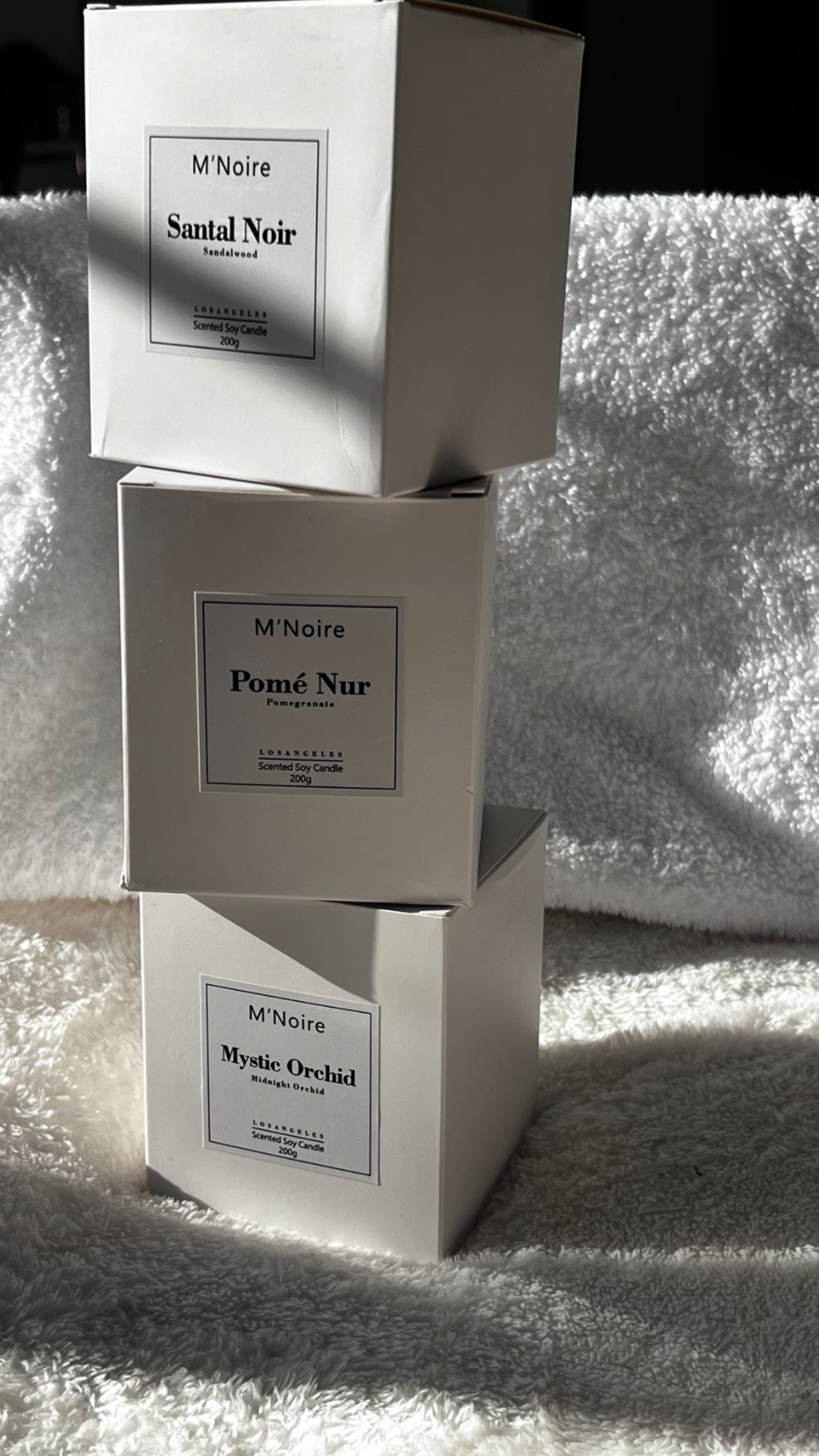 M’Noire Bundle: Three scents, one experience. Our woodwick candle trio ✨ Orchid • Pomegranate • and Sandalwood, designed to elevate every mood and moment. Let the soft crackle and layered aromas fill your space with elegance and warmth.
